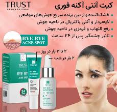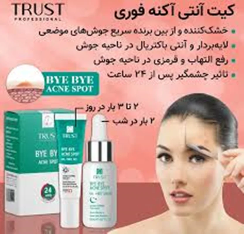 سریعترین درمان برای این شرایط، استفاده از کیت آنتی آکنه فوری تراست است. این محصول حاوی ترکیبات ضد باکتریایی و ضد قارچ است و از افزایش تکثیر میکروارگانیسمهایی که منشأ آکنه هستند در پوست صورت جلوگیری میکند.