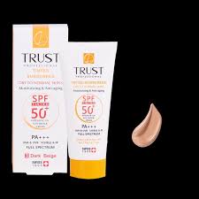 کرمهای ضدآفتاب رنگی تراست با SPF50+ از مرغوبترین و جدیدترین مواد اولیه موثره دارای حداکثر حفاظت دربرابر پرتوهای مضر خورشید ساخته شدهاند؛ این کرم با وجود بهرهمندی از بافتی سبک، دربرابر آسیبهای وارده توسط نور خورشید به خوبی از پوست محافظت و با مهار رادیکالهای آزاد از تخریب سلولهای پوستی جلوگیری میکند. همچنین با مصرف این محصول، بدون بسته شدن منافذ پوستی و ایجاد خلل در تنفس سلولهای پوستی، پوستتان آبرسانی میشود.