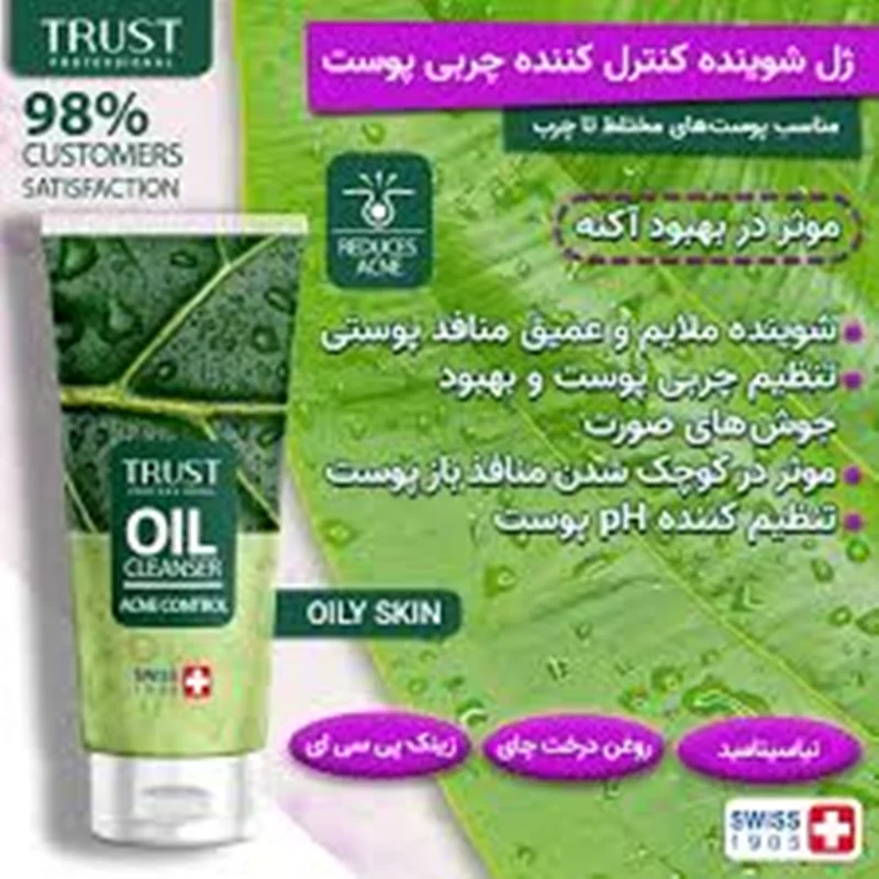 روش مصرف: روزانه یک تا دو مرتبه پوست صورت را توسط ژل شوینده تراست شستشو داده و پس از 30 ثانیه آبکشی نمایید. سپس میتوانید از کرم ضدجوش و کنترلکننده چربی تراست استفاده کنید.