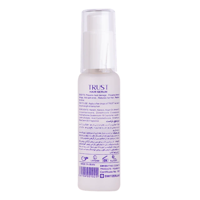 ترميمكننده و تقويتكننده مو افزايش براقي و درخشندگي تار مو حفظ رطوبت مو، نرمكننده و آبرسان قوی ضد موخوره، وزشدگي و الكتريسيته شدن مو جلوگيري از آسيبهاي ناشي از حرارت ( سشوار، بابيليس و اتوي مو) جلوگيري از آسيبهاي شيميايي (دكلره، رنگ مو)مناسب انواع مو