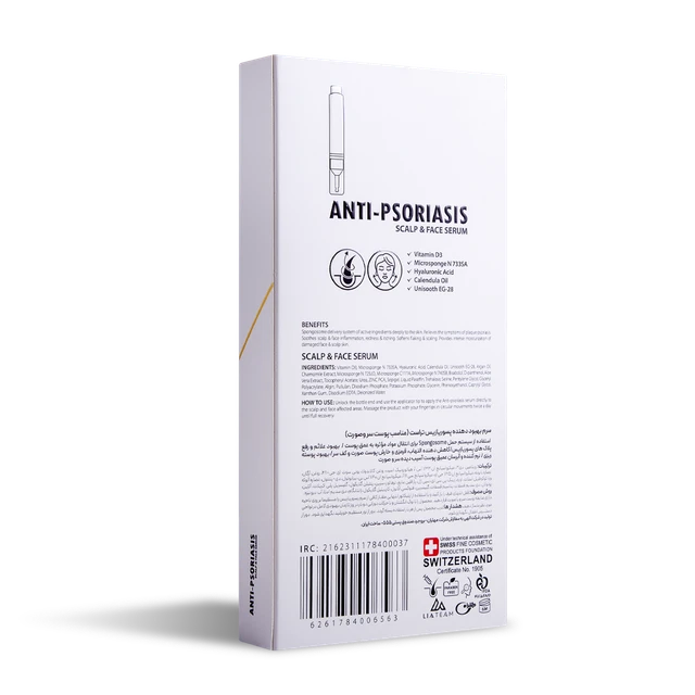 استفاده از سیستم حمل Spongosome برای انتقال ترکیبات موثره به عمق پوست بهبود علائم و رفع پلاک های پسوریازیس کاهش دهنده التهاب، قرمزی و خارش پوست صورت و کف سر بهبود پوسته ریزی نرم کننده و آبرسان عمیق پوست آسیب دیده سر و صورت