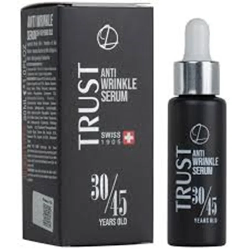 سرم ضدچروک صورت تراست (مناسب 30 تا 45 سال)، با داشتن ترکیبات فعال آبرسان و پپتیدهای تقویتکننده پوست، باعث تحریک تولید کلاژن در پوست و آبرسانی آن میشود. ترکیب هیالورونیک اسید به صورت همافزا با سدیم پی سی ای و زایلیتول، علاوه بر آبرسانی، به رفع چینوچروکهای پوستی کمک میکند. ترکیب گلوکونولاکتون خاصیت لایهبرداری داشته و ضمن از بین بردن سلولهای مرده پوست آن را آبرسانی نیز میکند. این سرم از آسیب رادیکالهای آزاد ناشی از پرتوهای UV به پوست جلوگیری کرده و از بروز چینوچروک روی پوست پیشگیری میکند.