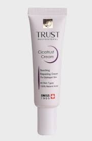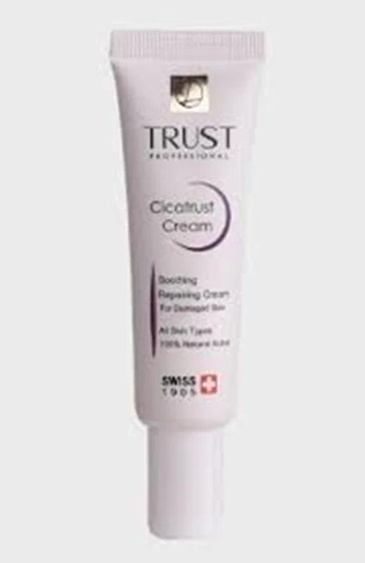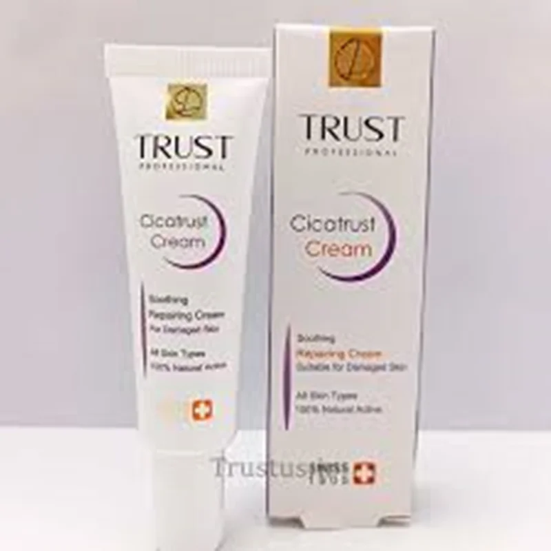 کرم ترمیم کننده تراست مناسب ترمیم پوستهای آسیبدیده و درمان انواع آسیبهای پوستی است. مواد مؤثره موجود در این کرم باعث تحریک به تکثیر سلولهای پوستی و ترمیم آسیبهای واردشده به پوست میشوند؛ این کار را نیز با افزایش انقباض عضلات اطراف ناحیه آسیبدیده، کمک به جمع شدن زخمها و بهبود سریعترشان انجام میدهند. وجود ترکیبات فعال گیاه براسیکای این محصول، از رشد باکتریها و قارچها جلوگیری کرده و از طریق اولیگوگالاکتومانان جلوی التهاب، قرمزی، خارش و سوزش پوست در ناحیه آسیبدیده را میگیرد. همچنین مصرف این کرم با داشتن ترکیبات فعال سرامیدی به آبرسانی پوست هم کمک میکند.
